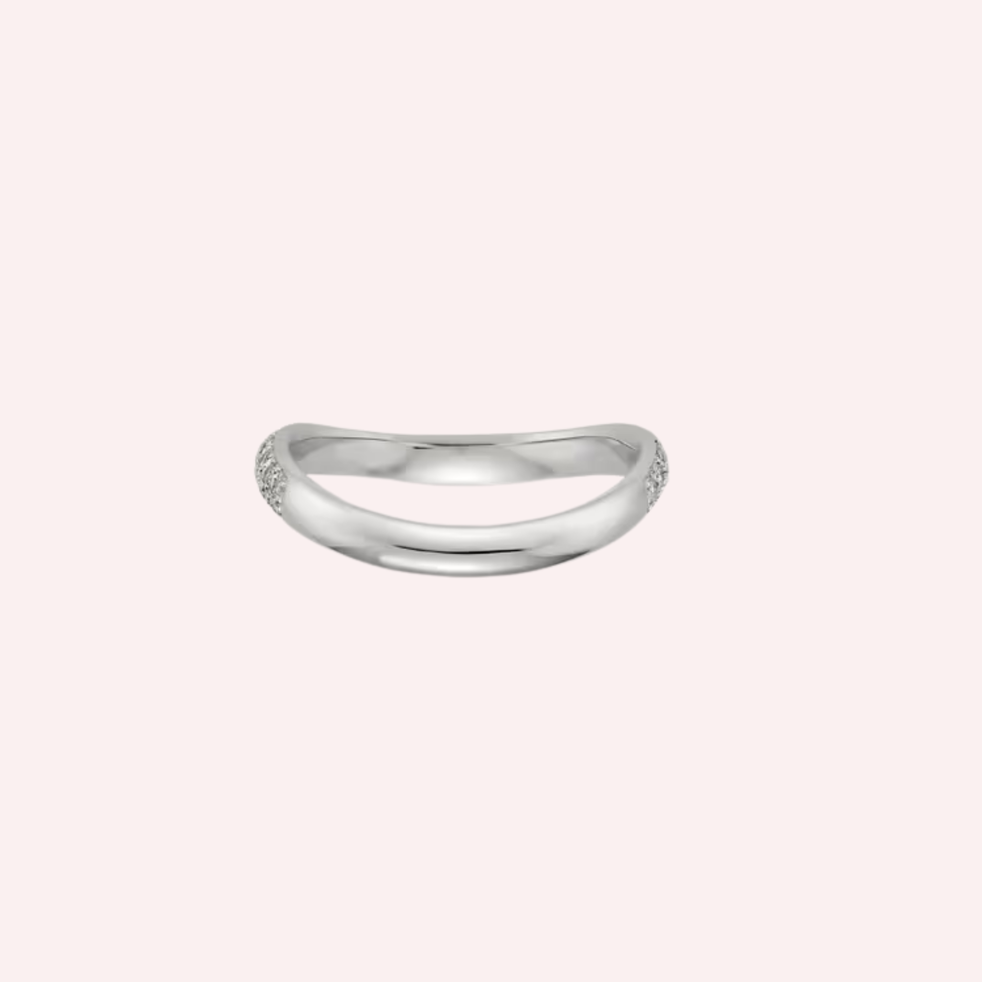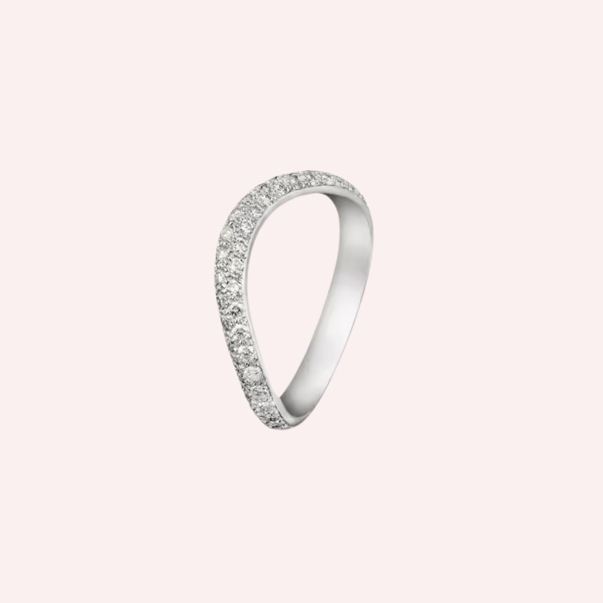 Expertly crafted in platinum 950/1000, this sophisticated band features two diamond-pavé rows and a refined 2.5 mm width (for size 52). It is set with 49 brilliant-cut diamonds totaling 0.49 carats, delivering exceptional brilliance while preserving a sleek, contemporary profile. The luminous diamonds enhance the band’s graceful curves, creating a perfect balance of timeless luxury and iconic design.