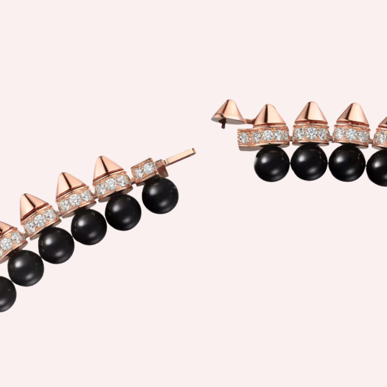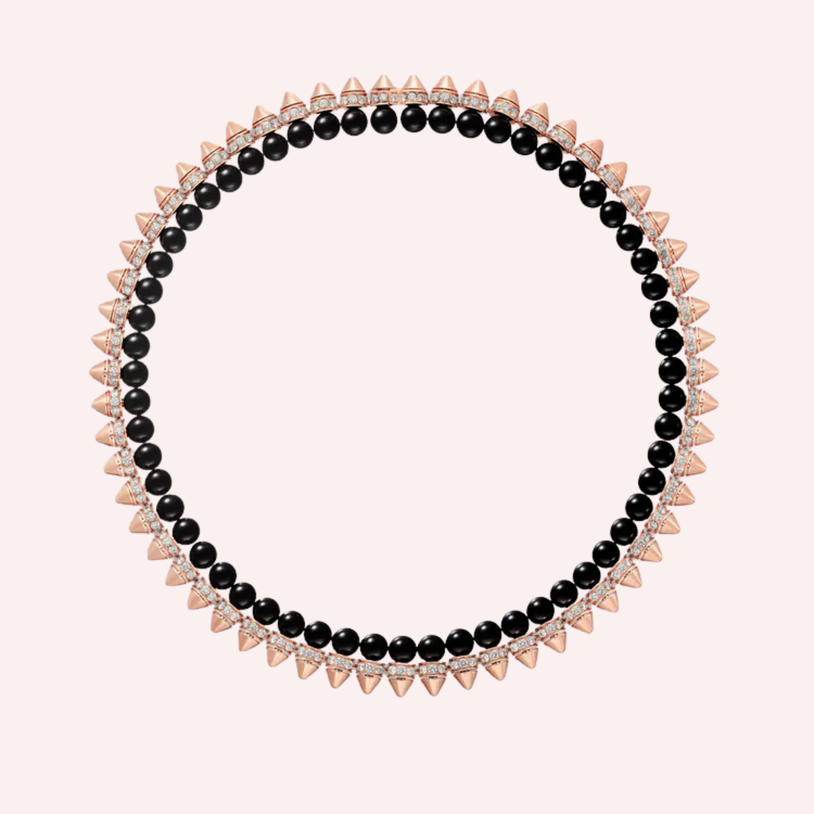 Accented with striking onyx elements and illuminated by diamonds, the necklace offers a dramatic balance between depth and brilliance. The supple construction allows the piece to move fluidly with the wearer, while the rich contrast of rose gold, deep black onyx, and sparkling diamonds creates a commanding statement of modern luxury—distinctive, powerful, and unmistakably Cartier.