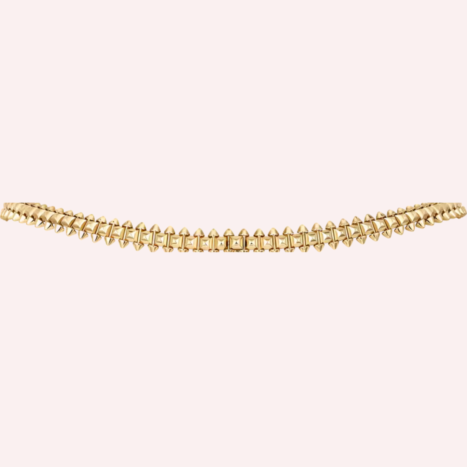 With a width of 8 mm and a neck size of 35 cm, the necklace sits elegantly at the neckline, offering a confident statement while maintaining exceptional comfort. The warm glow of yellow gold enhances the architectural design, making this piece a versatile expression of modern luxury—distinctive, powerful, and unmistakably Cartier.
