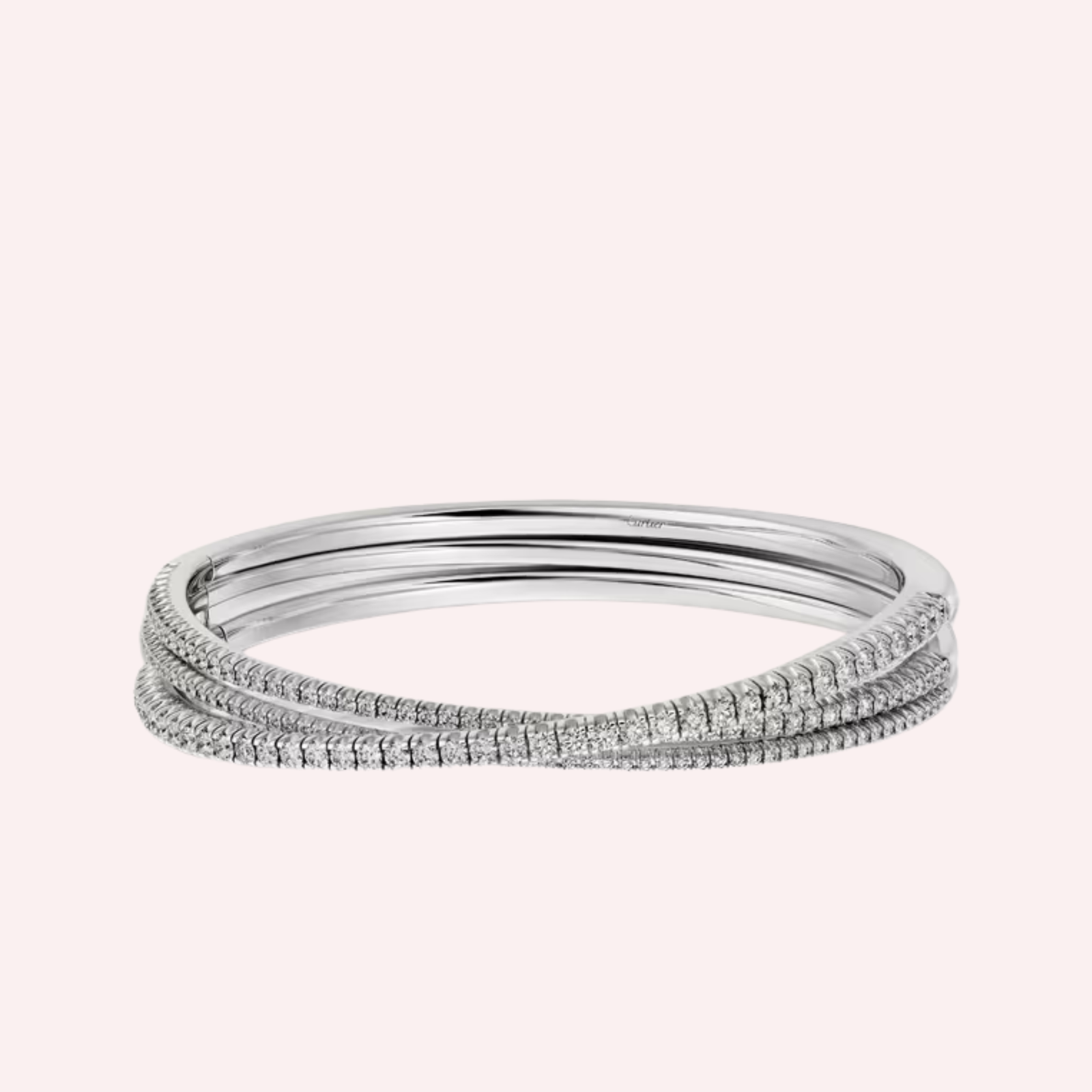A refined Pre-Owned Étincelle de Cartier half-pavé bracelet in 18K white gold set with brilliant-cut diamonds.