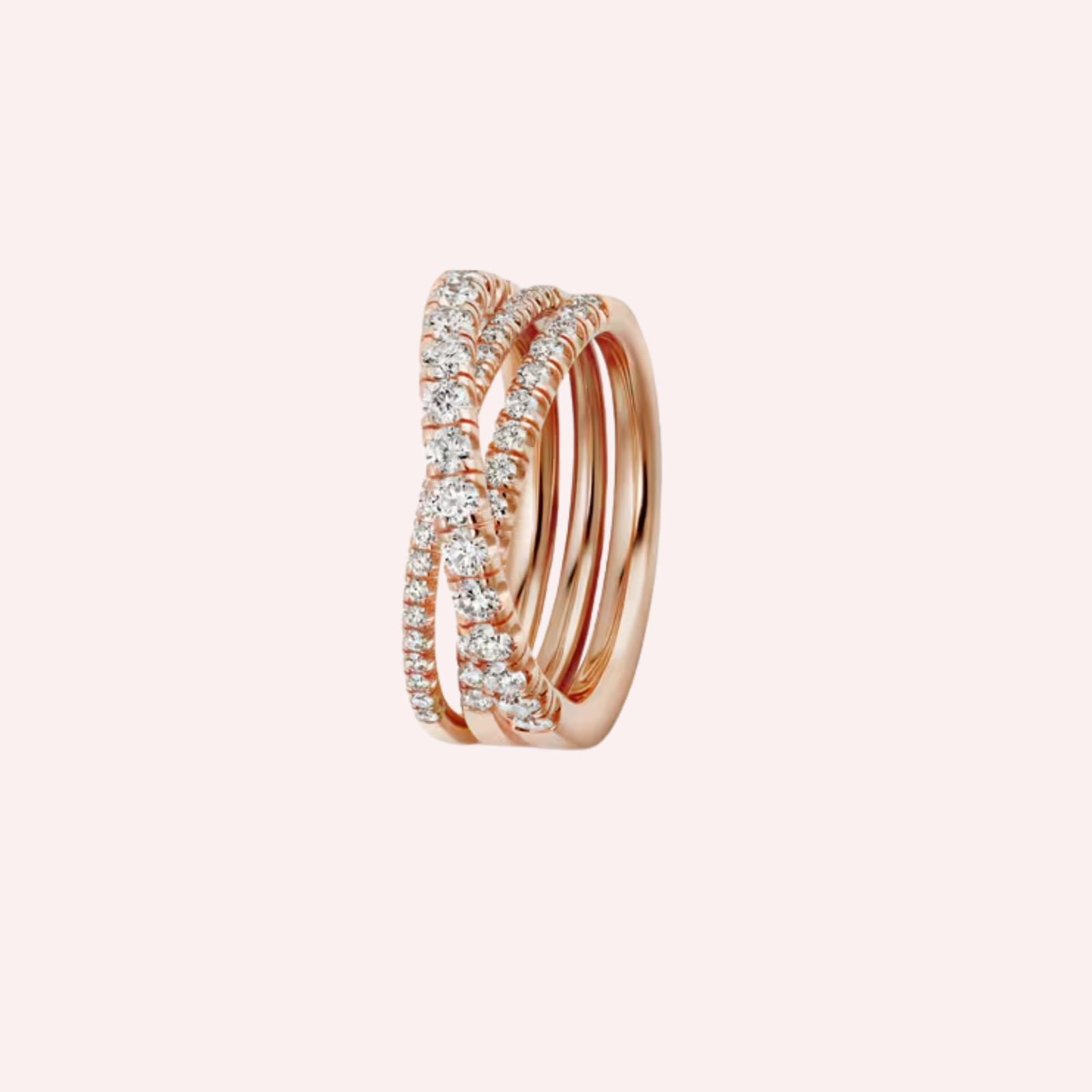 Crafted in warm 18K rose gold (750/1000), this semi-pavé ring is paved with 52 brilliant-cut diamonds totaling 0.81 carat, offering exceptional sparkle and visual harmony. Measuring approximately 6.93 mm in width for size 52, the design delivers a graceful yet substantial presence on the hand, perfectly balancing elegance with contemporary sophistication.