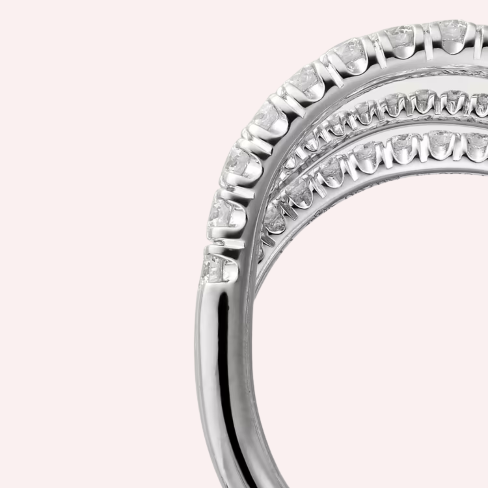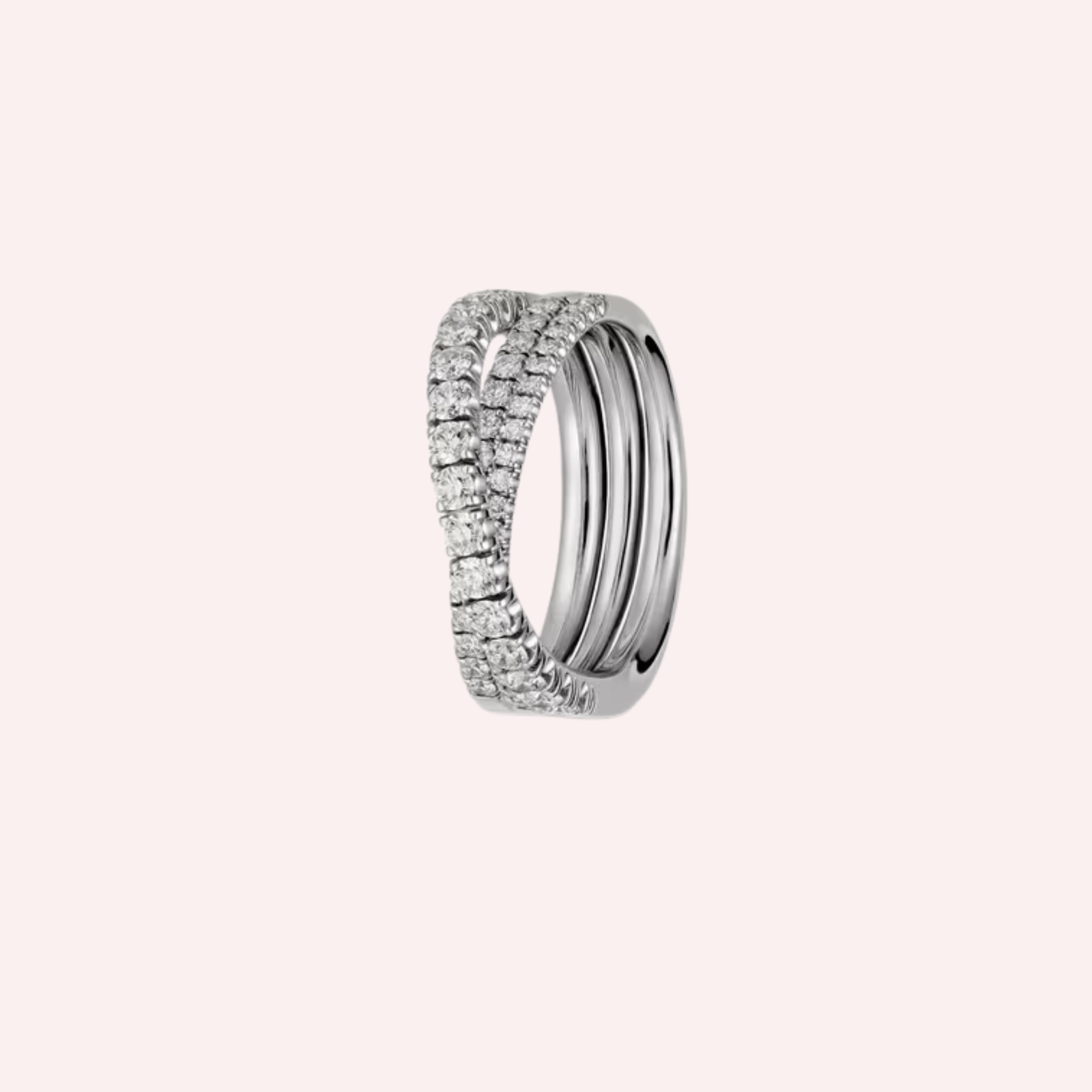 Crafted in polished 18K white gold (750/1000), this semi-pavé ring is set with 52 brilliant-cut diamonds totaling 0.81 carat, creating a continuous shimmer of light across its surface. Measuring approximately 6.93 mm in width for size 52, the design offers a graceful yet substantial presence on the hand, balancing sophistication with modern allure.