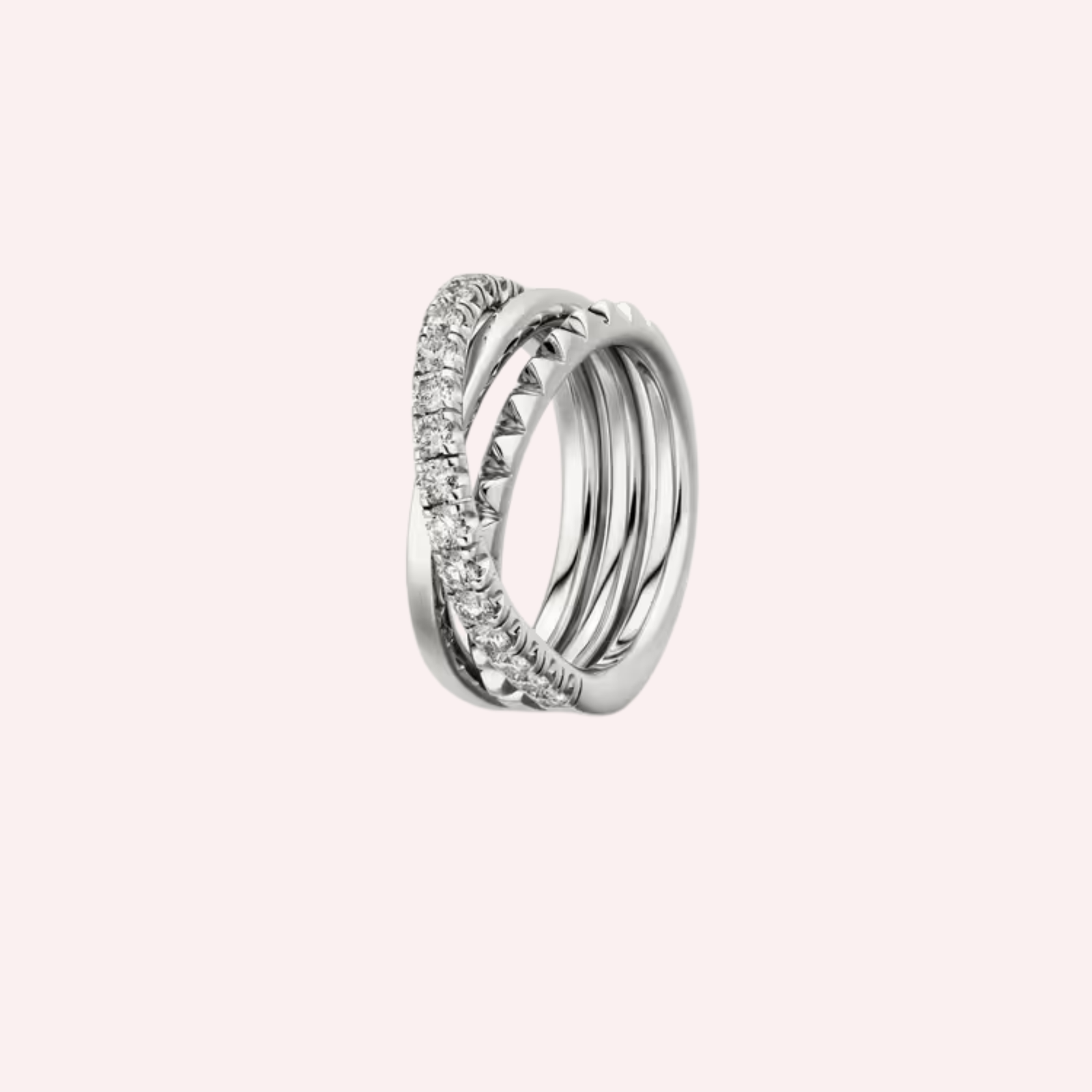 A Pre-Owned Étincelle de Cartier semi-pavé ring in 18K white gold, set with brilliant-cut diamonds totaling 0.63 carat.