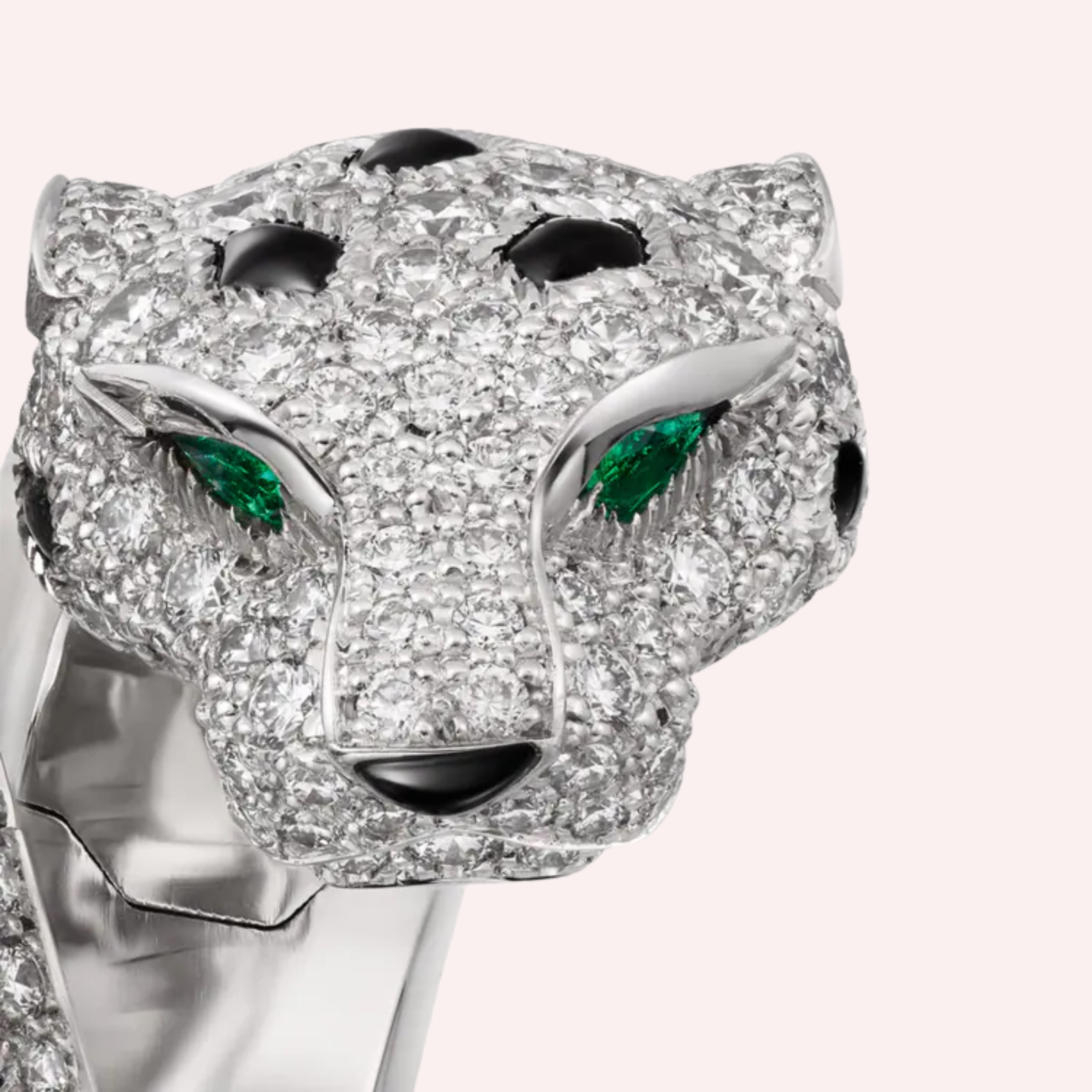 A dynamic and captivating expression of Cartier’s most iconic symbol, the Panthère de Cartier articulated pavé ring brings movement, brilliance, and character together in a single creation. First introduced in 1914, the panther represents the Maison’s spirit of freedom and bold femininity—imagined by Louis Cartier and elevated to legendary status by Jeanne Toussaint.