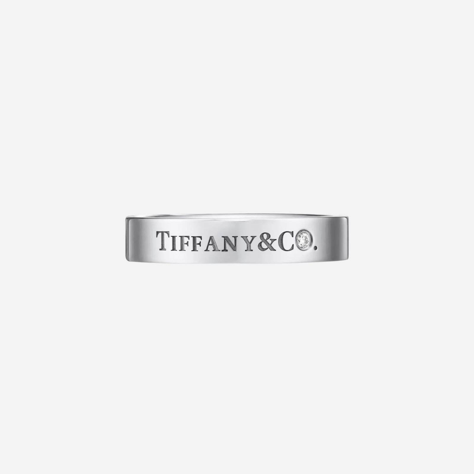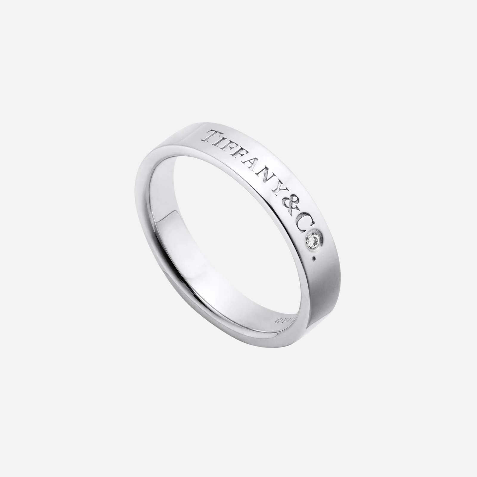 The sleek platinum surface features the engraved “T&CO.” motif, accented by a single diamond that adds a subtle touch of brilliance to the design. The clean lines and thoughtful detailing create a modern yet timeless aesthetic. Elegant when worn as a wedding band, the ring can also be styled with other Tiffany designs for a distinctive and contemporary stack.