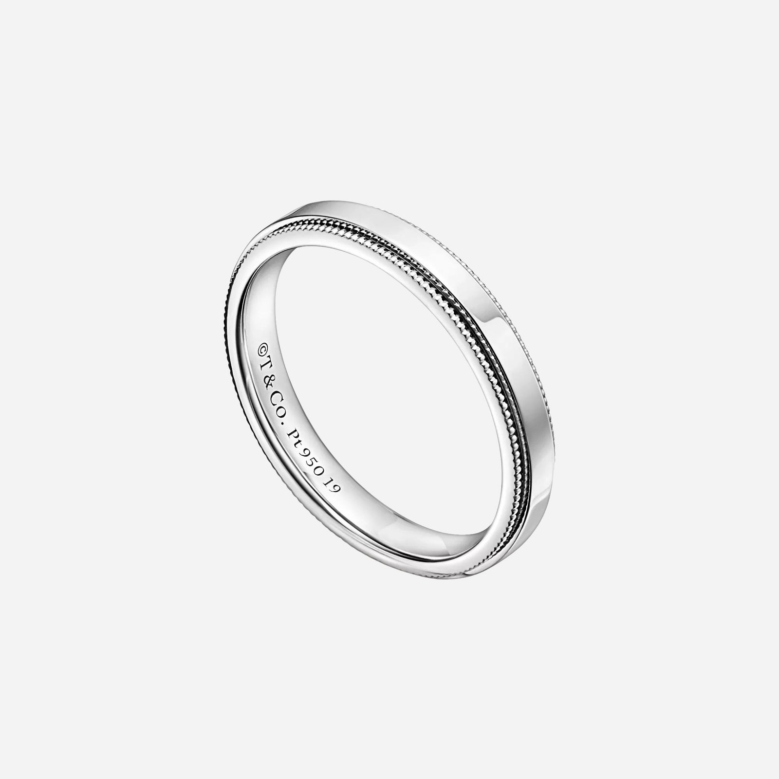 Expertly crafted in platinum, the ring features textured milgrain detailing that accents the sleek silhouette, adding depth and subtle character to the classic band. The refined 3 mm width offers a graceful and sophisticated presence on the hand. Elegant when worn alone as a wedding band or styled in a stack for a bold contemporary look, this design embodies understated refinement.