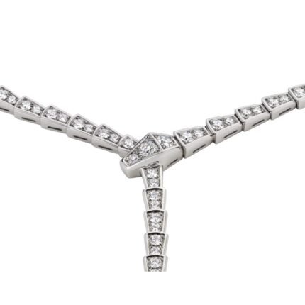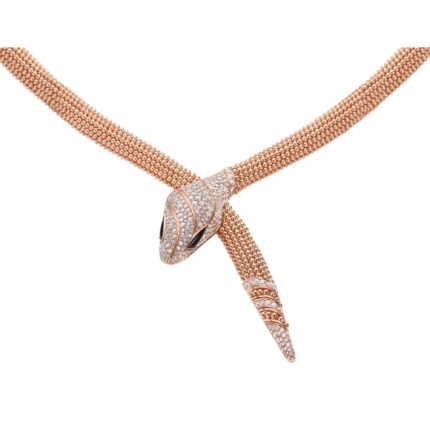 A pre-owned Lignes Essentielles necklace in 18K rose gold, set with 121 brilliant-cut diamonds totaling 10.89 carats in a pure, elegant design.