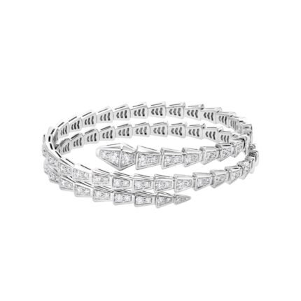 A Pre-Owned Panthère de Cartier articulated pavé ring in 18K white gold with diamonds, emerald eyes, and onyx detailing.