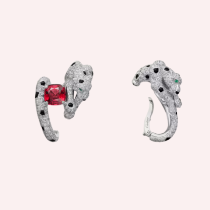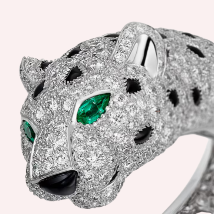 A Pre-Owned Cartier Destinée solitaire ring in platinum, featuring an oval-cut sapphire framed by pavé-set brilliant-cut diamonds.