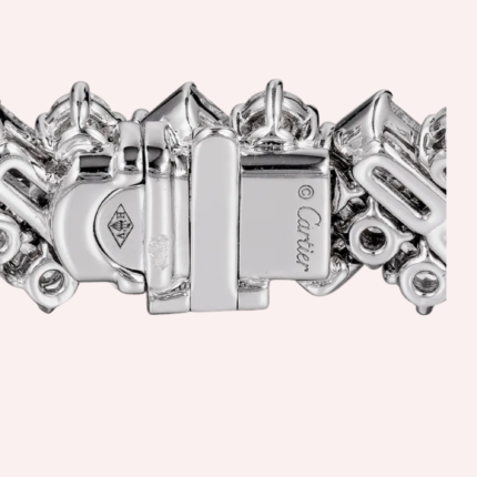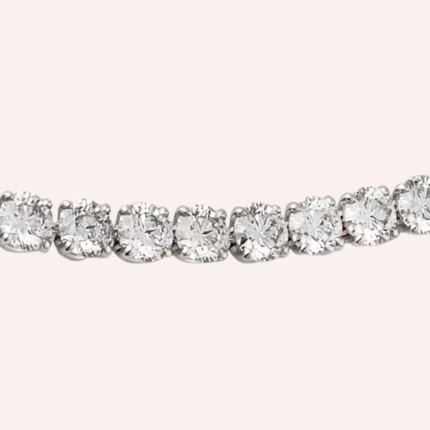 A pre-owned Essential Lines necklace in platinum, set with 104 brilliant-cut diamonds totaling 19.74 carats in a pure, architectural design.