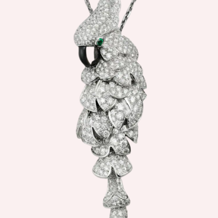 Pre-owned Cartier Faune et Flore earrings in 18K white gold, set with emeralds and 342 pavé diamonds totaling 1.85 carats.