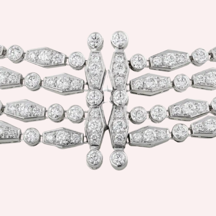A spectacular Pre-Owned Cartier Agrafe cuff bracelet in 18K rose gold set with 1302 brilliant-cut diamonds.