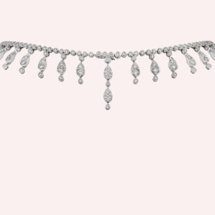 A pre-owned Pluie de Cartier necklace in 18K white gold, set with 407 brilliant-cut diamonds totaling 25.74 carats.